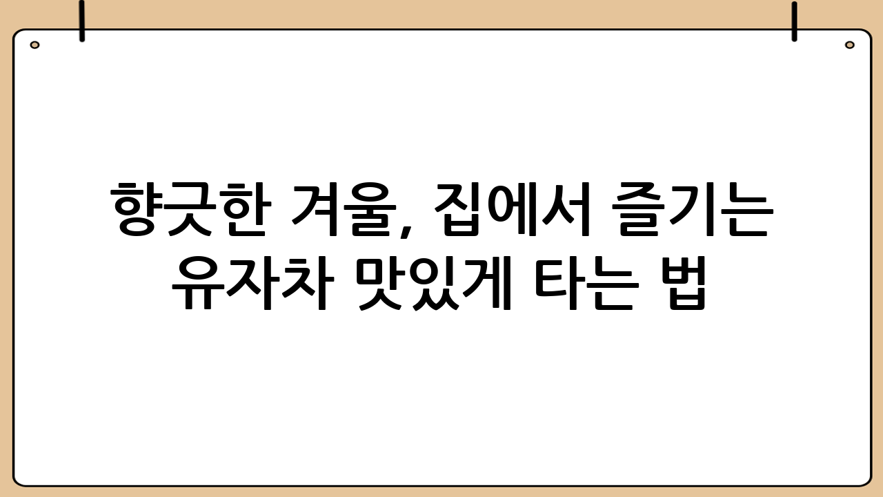 향긋한 겨울, 집에서 즐기는 유자차 맛있게 타는 법 🍯 겨울 하면 떠오르는 대표적인 차, 바로 유자차입니다. 따뜻하게 마시면 몸도 마음도 사르르 녹는 듯한 기분에 추위도 잊게 해주죠. 특히 비타민 C가 풍부하여 감기 예방에도 좋고, 특유의 상큼한 향은 기분 전환에도 도움이 됩니다. 하지만 시판 유자차는 너무 달거나 유자 함량이 아쉬울 때가 있죠. 그래서 오늘은 집에서 직접, 내 입맛에 딱 맞는 유자차 맛있게 타는 법 과 유용한 정…
